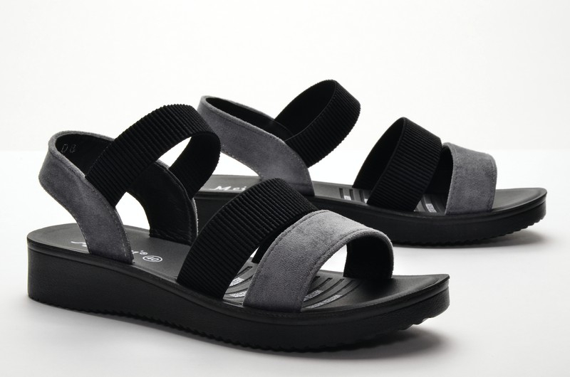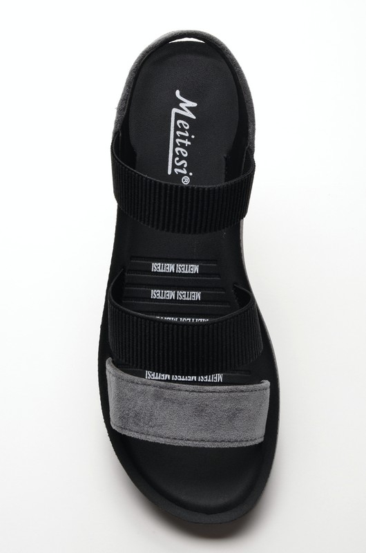 Meitesi D8-27 Сандалии женские чер-сер иск велюр+текстиль